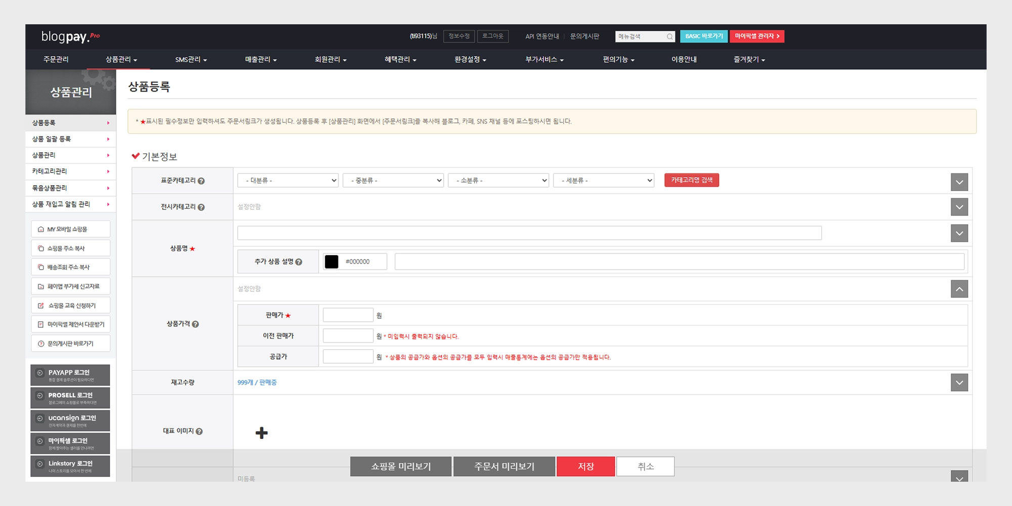 블로그페이 상품등록 전체 흐름 정리