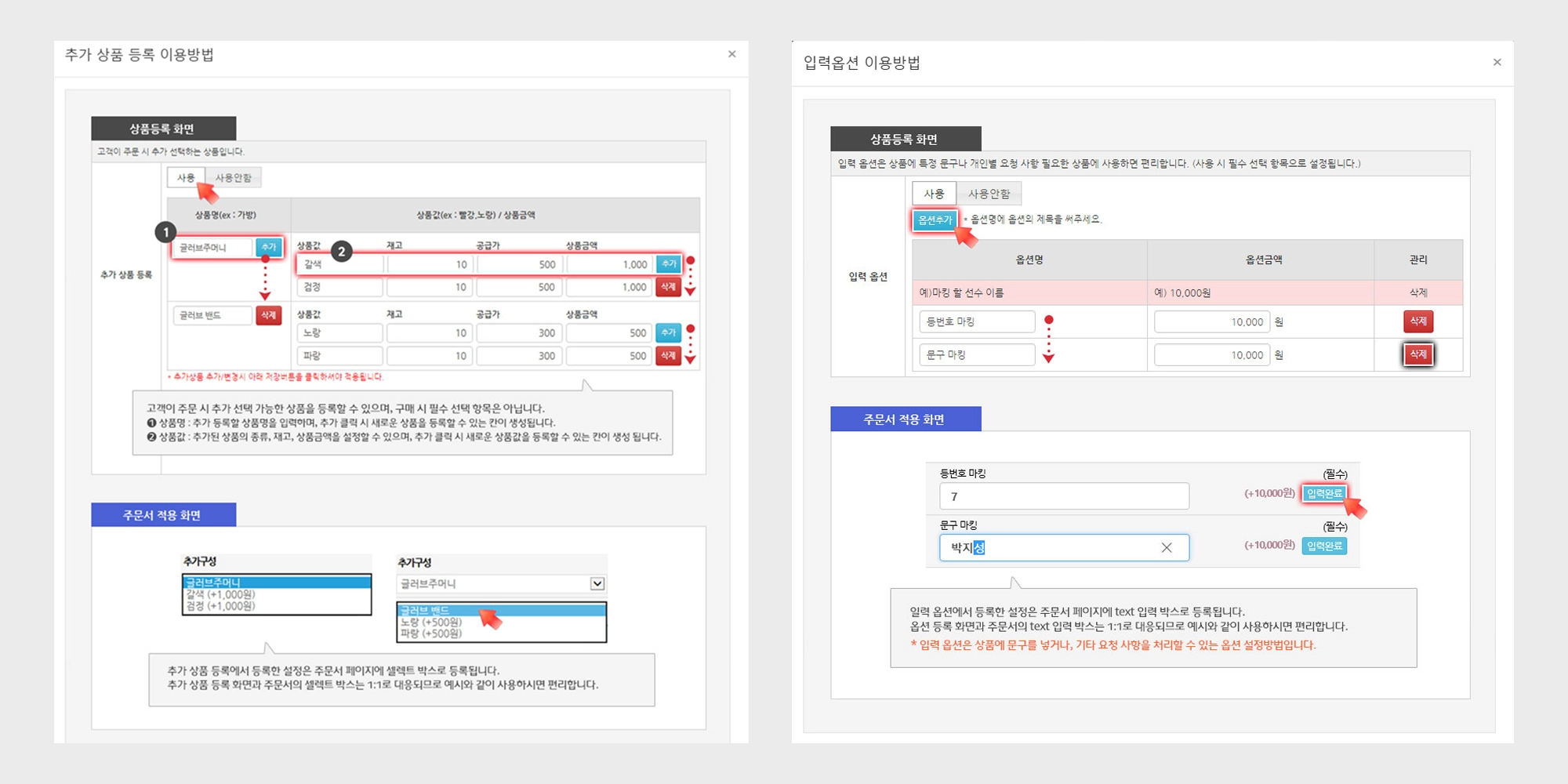 추가상품 옵션 : 구매 시 선택 가능한 부가 상품 등록