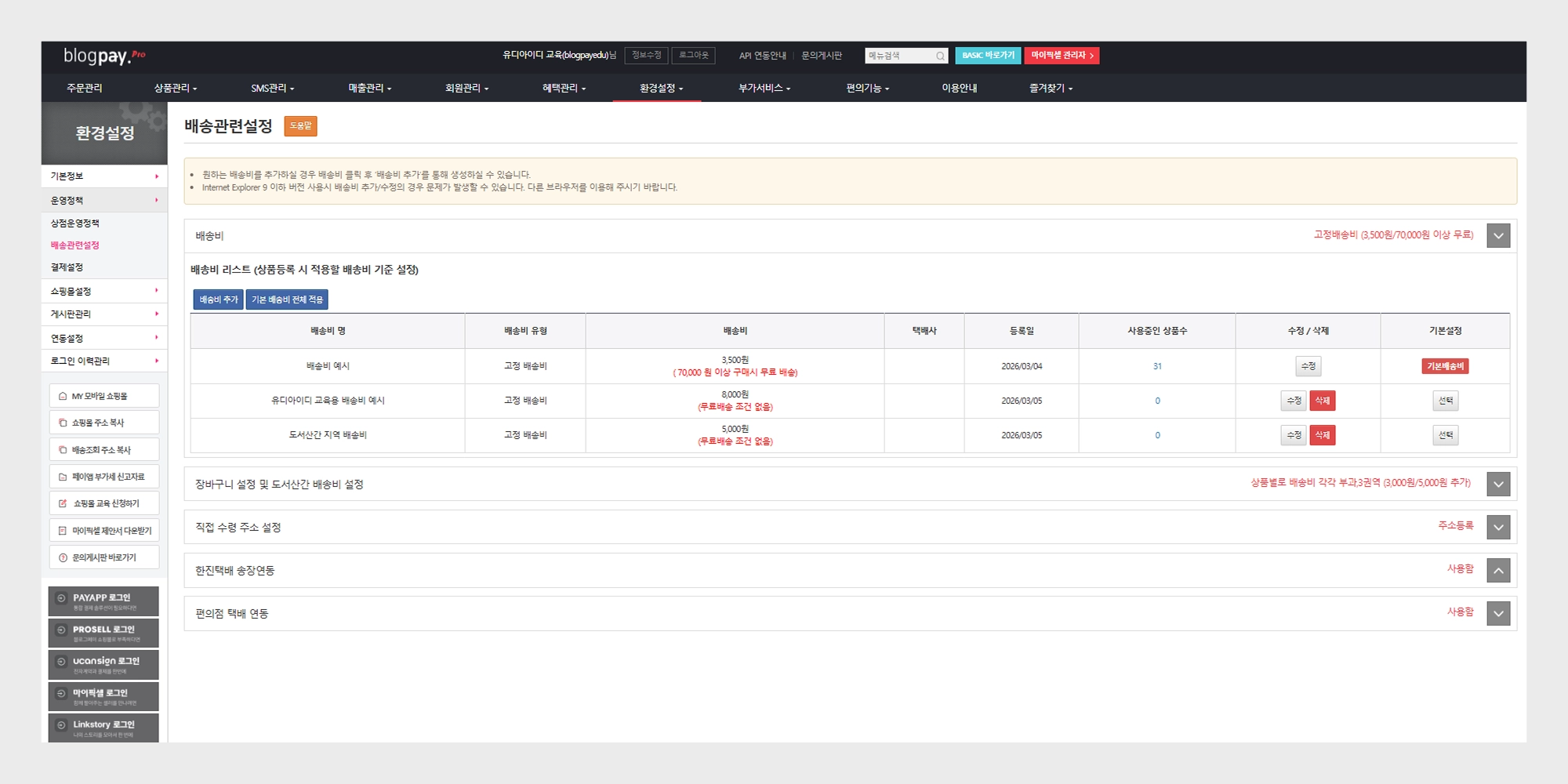 상품 등록 전 필수 설정 (결제·배송 설정)